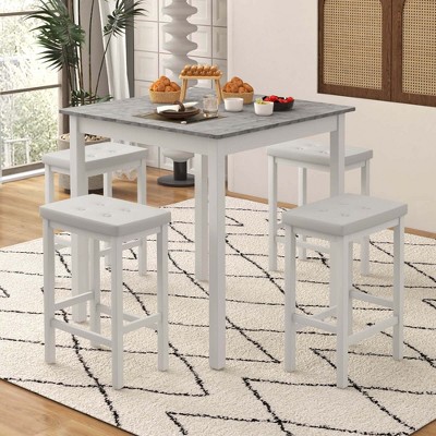 KTMBDW Kids Wood Table and Chairs Set, Toddler Play Table with 2 Chairs, 3 Pieces Children Multi-Activity Round Table for Reading Learing Eating,White