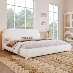 KTMBDW Queen/King Size Bed Frame, Upholstered Boucle Bed Frame King with Headboard, Soft Cloud Bed Frames, Rounded Corners