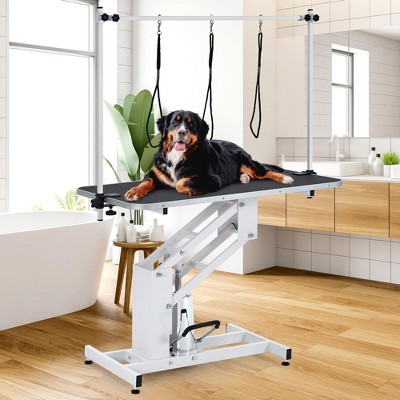 KTMBDW 36''Large Dog Grooming Table, Adjustable Arms, Nooses, Mesh Tray, Foldable Pet Station at Home, Maximum Capacity Up to 300Lb, Pink