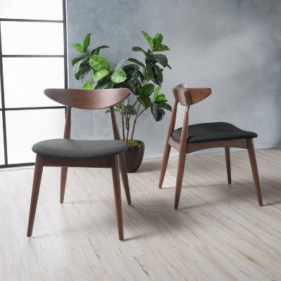 KTMBDW Mid-Century Modern Fabric Dining Chairs with Natural Finished Rubberwood Frame, 2-Pcs Set