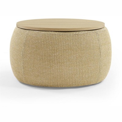 KTMBDW Modern Round Storage Ottoman, 2 in 1 Function Linen Ottoman Foot, as Coffee table and Ottoman for Living Room, Bedroom, Makeup Room