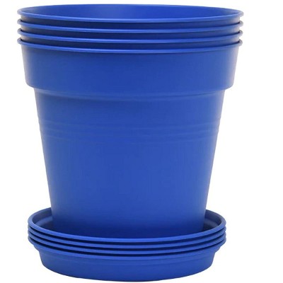 KTMBDW Plant Pots Set of 3, 5.12/6.1/7.48 Inch, Ceramic Planter Pot with Drainage Hole, Indoor/Outdoor Cylinder Round Planter Pot, Blue