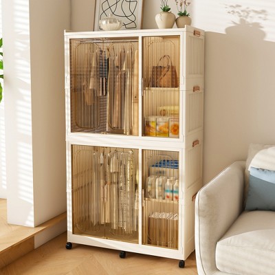 KTMBDW Portable Wardrobe Closet Storage Organizer for Clothes, Plastic Collapsible Closet Organizer with Transparent Door for Bedroom, White