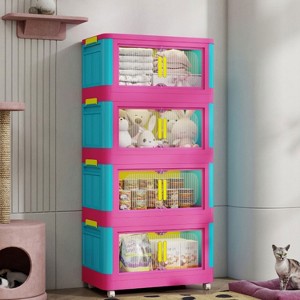 KTMBDW Stackable Storage Bins with Lid, Clear Foldable Plastic Drawer Storage on Wheels, Closet Organizers and Storage for Bedroom, Pink&Blue