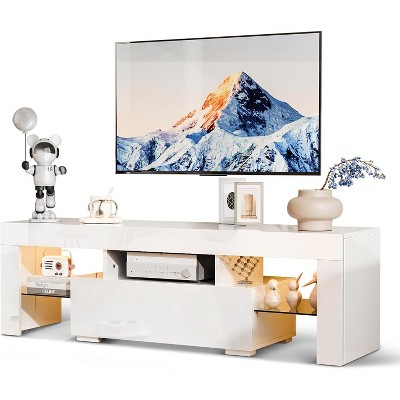 Featuring a modern and simple design, this TV Stand with Led fits with different room theme, and the LED lights could create different atmosphere for your room.