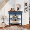 - [Small Corner Table for Small Spaces] This corner end table occupies a small space, with dimensions of 33.86''L x 20''W x 34.6''H, weight of 37.48 LBS, and three layers for display and storage.