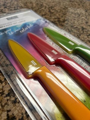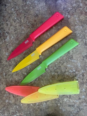 Kuhn Rikon COLORI+ Straight & Serrated Paring Knife Set, Red, Yellow, Green