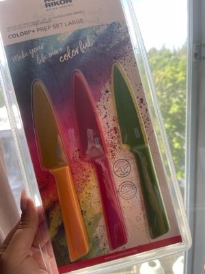 [This review was collected as part of a promotion.] I recently purchased the COLORI®+ 3-piece knife set, and I am absolutely thrilled with the quality and performance. These knives have become essential tools in my kitchen. The Japanese stainless steel blades are incredibly sharp, making every slice precise and effortless. I particularly love the versatility of the paring knife and the serrated paring knife, which handle everything from slicing bread to peeling fruits with ease. The ergonomic handles are comfortable to hold, and the lightweight design makes prolonged use a breeze. The safety sheaths are a thoughtful addition, ensuring the knives are safely stored. Whether you’re a seasoned chef or a kitchen novice, these knives will make your prep work quick, easy, and enjoyable!