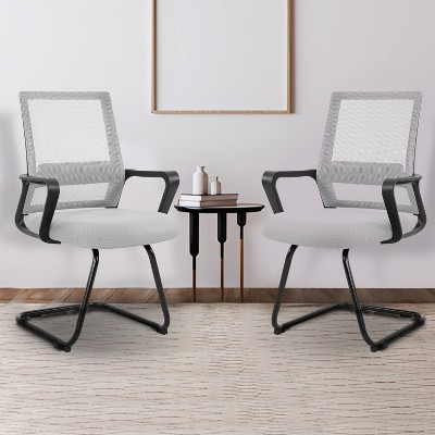 Kumasinova 2 PCS Stackable Mesh Guest Chair,Ergonomic Office Chair with Metal Frame,Upholstered Arm Chairs for Living Room,Office,Reception Room,Black