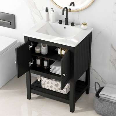 Kumasinova Black 20" Bathroom Vanity,Vanity Cabinet with Ceramic Sink,,Open Shelf,Storage Rack,Soft Closing Door,100LB Capacity Freestanding Vanity