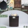 Add a touch of elegance and rustic charm to your outdoor space with this luxurious fire pit table. The sleek marble-patterned tile tabletop exudes modern sophistication, while the handwoven PE wicker base adds natural texture.