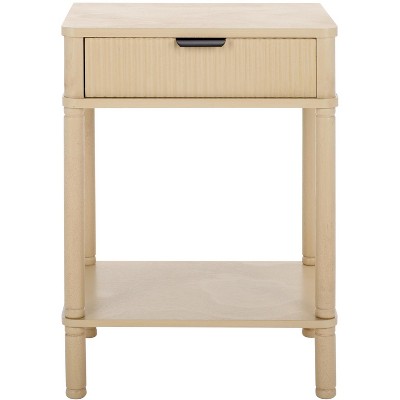 Kumasinova 22"Rattan End Table with Storage&Solid Wood Legs,1 Charging Station,Versatile Nightstand Sofa Side Table for Living Room&Bedroom,Natural