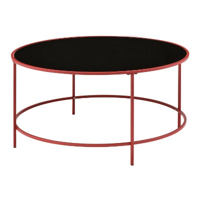 Kumasinova 22" Round Coffee Table,Center Table with Tempered Glass Top,Side Table with Soild Wood Base,Simple End Table for Living Room,Cherry