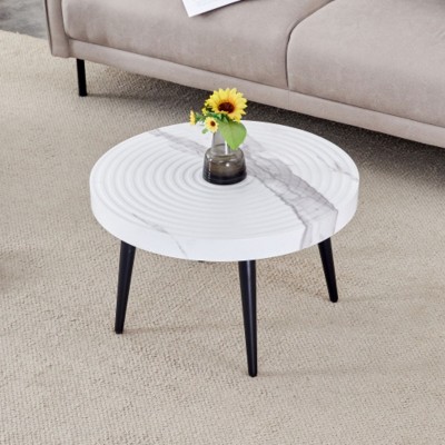 Kumasinova 23.6" Exquisite Ripple-Patterned Tabletop Coffee Table with Tapered Metal Legs,Elegant Cocktail Table for living Room,350lbs Max,White