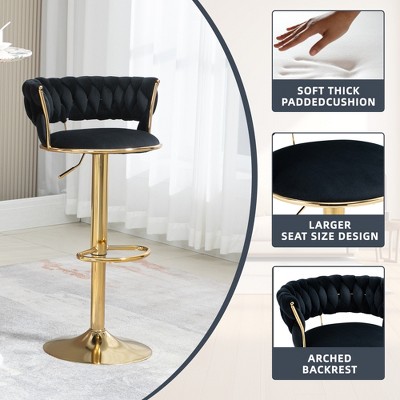 Kumasinova 25.9"H Swivel Bar Stools with Button Tufted Back,Set of 2,Luxury Velvet Barstools Dining Chairs with Chrome Nailhead Trim,Black