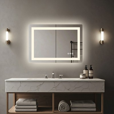Kumasinova 28"x36" LED Bathroom Mirror with Anti-Fog,Vanity Mirror with Dual Light Source,3 Lighting Mode,Wall Mirror for Bathroom,Living Room,Bedroom