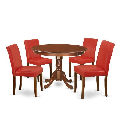Kumasinova 3-Piece Round Dining Set, Trestle Dining Table with 2 Velvet Side Chairs for Living Room, White Dining Table with Blue Dining Chairs