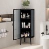 Kumasinova 43.3 Inch Bathroom Storage Cabinet,Modern Floor Coner Cabinet with Tempered Glass Door and Shelves for Living Room,Home Office,Black