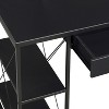 This professional office desk combines wood and metal construction to create a durable 47.5"x24.5" workspace, standing 41.5" tall and weighing 69.5 lbs for exceptional stability. The computer desk features eight open shelves and one spacious drawer, providing organized storage for audio equipment, cables, and office supplies.