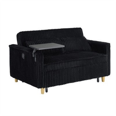Kumasinova 52.8" Pull Out Sofa Bed,Sofa Couch with 2 Lumbar Pillows,Adjustable Backrest,3 USB Ports,Blue Tufted Chenille Sleeper Sofa for Living Room