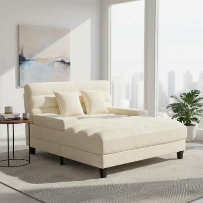 Kumasinova 57.1" Chaise Lounge Sofa,Modern Couch with LED Light Strip,Adjustable 6-Position Backrest,Chenille Upholstered Sofa Bed for Living Room