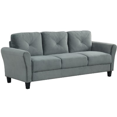 Kumasinova 77" Gray Chesterfield Velvet 3-Seater Sofa,Couch with Tufted Backrest,Nailhead Trim,2 Removable Cushions,Upholstered Sofa for Living Room