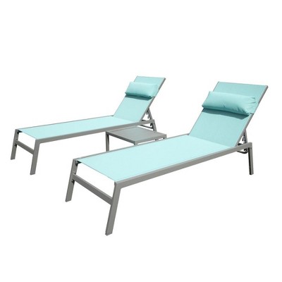 Kumasinova Chaise Lounge Outdoor Set of 3,Adjustable Lounge Chair Outdoor with Removable Pillows,Beach Chair with Metal Side Table for Lawn,Lake Blue