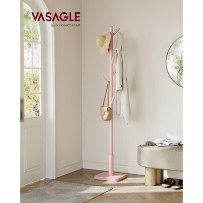 Kumasinova Classic Solid Wood Coat Rack with 10 Hooks,3-Tier Freestanding Coat Racks for Entryway,Clothing Racks for Hanging Clothes,Natural