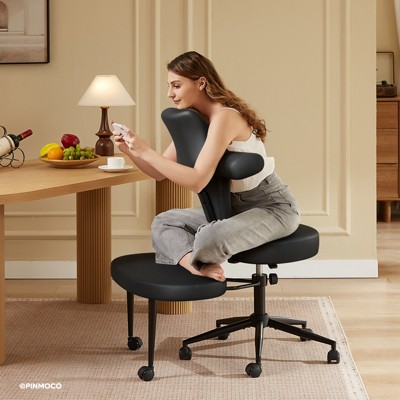 Kumasinova Criss Cross Legged Chair,Swivel Home Office Chair with Wheels,Height Adjustable Ergonomic Desk Chair,Faux Leather Chair,300lbs Max,White