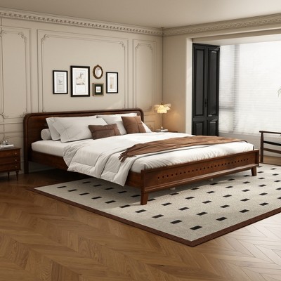 Kumasinova Farmhouse Wooden Bed Frame with Storage LED Light Headboard and 2 USB,Low-to-Floor Mattress Foundation,Noise Free,800lbs Capacity