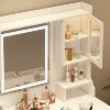 - Large Illuminated Mirror: The vanity with mirror features a spacious reflective surface with warm lighting that ensures complete visibility and optimal illumination for beauty routines.