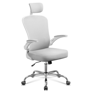 Kumasinova Mesh Office Chair with Flip-Up Arms,Adjustable Headrest&Lumbar Support,Ergonomic Computer Chair,Rolling Desk Chairs,350lbs Max,Black/White