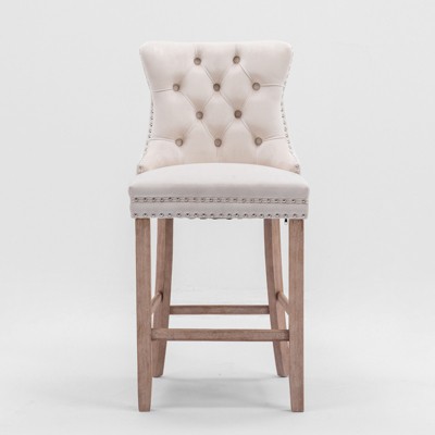Kumasinova Mid-Century Modern Velvet Bar Stools Set of 2, Solid Wood Counter Stools, Velvet Upholstered Barstools with Button Tufted, Beige