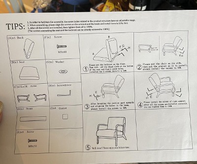Ordered a cream upholstered armchair and then they updated the listing while it was in transit to be a dark grey chair, not even the same style. Ordered two and both wrong. extremely upsetting. This chair comes in a box and seems like crap. Do not order.