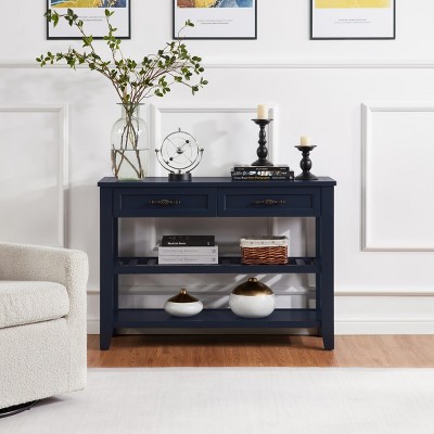 Kumasinova Modern Console Table with 2 Open Shelves,42" Narrow Entryway Table with 2 Drawers for Entryway,Hallway,Living Room,Blue