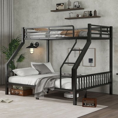 Kumasinova Queen Size Bunk Bed with Trundle,Metal Bunkbeds with Ladder&Guardrail,Space-Saving Bunk Bed Platform for Teens&Adults,350/500lbs Max,Black