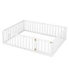 Kumasinova Queen Size Wood Floor Bed,Toddler Floor Bed Frame with Fence and Door,Montessori Floor Bed for Kids,Girls,Boys,White