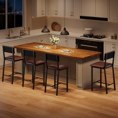 Kumasinova Set of 2 Counter Height Bar Stools, Sturdy Iron Frame Counter Stools, Minimalist Counter Height Stools with Back, Beige Fabric Bar Stools