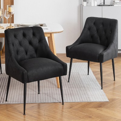 Kumasinova Set of 2 French Upholstered Dining Chairs, Linen Fabric Kitchen Chairs with Rattan Backrest, Solid Wood Frame Dining Room Chairs, Tan