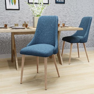 Kumasinova Set of 2 Upholstered Velvet Dining Chairs with High Backrest, Wood Kitchen Chairs with Decorative Rivets, Modern Light Blue Armless Chairs
