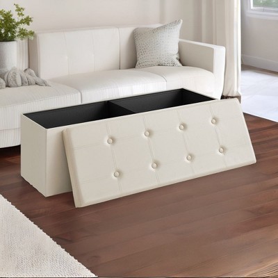 Kumasinova Square Accent Ottoman with Linen Upholstery,Chic Tufted Ottoman Bench with Solid Wood Legs for Bedroom and Living Room,Beige