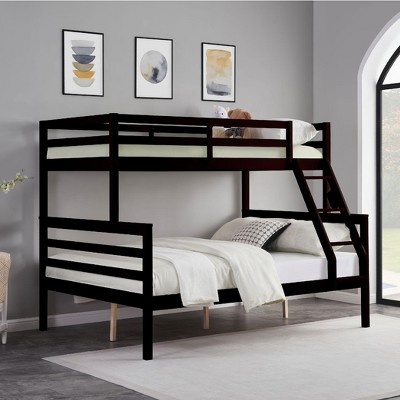Kumasinova Twin Over Full Bunk Bed with Thick Posts,Wood Bunk Bed with Ladder,High Guardrail for Kids Teens Bedroom,No Box Spring Needed,Espresso