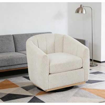 Kumasinova Upholstered Barrel Chair, 360° Swivel Chair, Chenille Accent Chair with Round Metal Base, Tufted Pumpkin-Shape Club Armchair, Charcoal