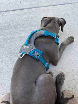 This is a very sturdy and comfortable harness for our German Shepherd. It gives him a lot of room for movement and he looks very handsome in the blue! This is our second Kurgo harness. Great, well-crafted product that is durable, easy to wash and our dog actually gets excited when he puts it on for his daily walks and hikes.