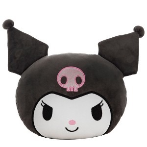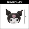 - Featuring a plush, cloud-shaped design embroidered with Kuromi’s signature pink skull and her playful, confident expression.