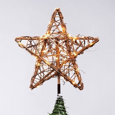 Kurt Adler 10-Light Indoor Rattan Gold Star Christmas Treetop, 27.5in