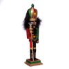 Designed by renowned artist Holly Adler, Hollywood™ Nutcrackers is a whimsical collection of nutcrackers created exclusively for Kurt S. Adler, Inc., and features a variety of designs including Christmas, fantasy, and everyday nutcrackers. This Kurt Adler 16.5-Inch Hollywood™ Nutcracker is dressed in red, gold, black, and green. In his left hand is a gold staff with a crystal on top. This nutcracker stands tall on a red, gold, and green base and is topped off with a tassel.