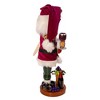 Decorate your home this Christmas with this 18.25-Inch Steinbach Winemaker Santa Nutcracker from Kurt Adler! This nutcracker is designed holding a wine glass in one hand and a bunch of grapes in the other. His Santa hat features a grape brooch and by his feet is a wooden basket of grapes and bottle of wine.