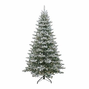 This 7.5-Foot Pre-Lit Warm White LED Snow Pine Tree from Kurt Adler is a beautiful and festive addition to any holiday decor. Its faux snow-flocked design boasts 1535 tips and a 52-inch diameter, a folding leg base and is pre-lit with 650 warm white T5 LED lights which comes with a UL adapter and non replaceable bulbs.