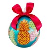 These blue, green and pink with pineapple pattern glass ball ornaments from Kurt Adler are a modern addition to any home and holiday décor. This 6-piece set includes 2 each of blue, green and pink ornaments, each decorated with pineapples and pink ribbon bow. Each ornament measures 80mm (approximately 3.1 inches).